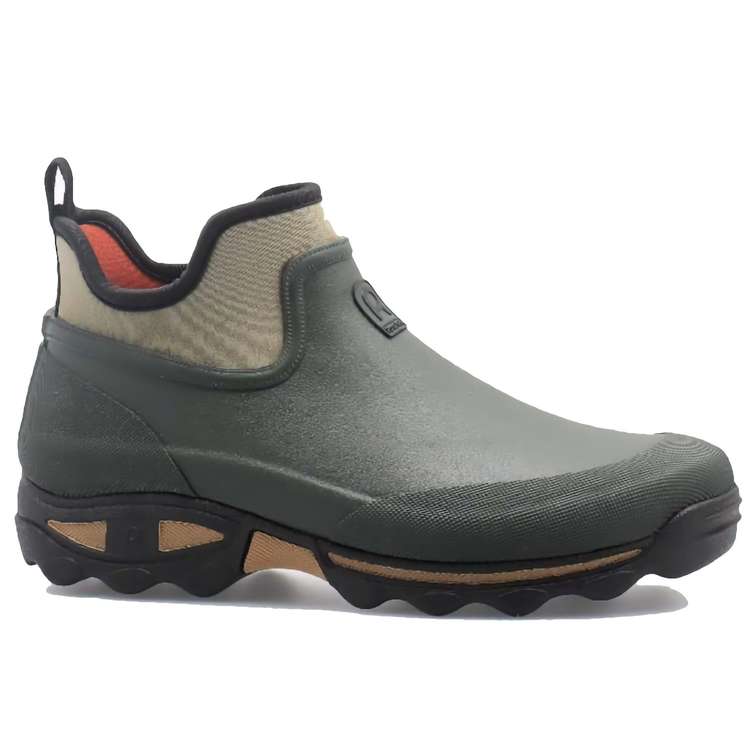 Le bottillon Clean Land kaki de Rouchette est conçu en caoutchouc naturel R'GUM Efficient. La tige souple associée à une doublure néoprène ISOLA forme une structure étanche adaptée aux travaux extérieurs. La semelle extérieure en caoutchouc intègre la technologie CLEAN avec système Frotte&Go. Les reliefs de semelle sont étudiés pour s’emboîter entre eux afin d’évacuer la terre par simple frottement entre les deux pieds. L’intérieur reçoit une semelle EVA Confort Soft de 6 mm, amovible et thermoformée. La doublure néoprène épouse la forme du pied et participe à l’isolation. Une languette arrière facilite l’enfilage et le retrait du bottillon. L’ensemble forme une chaussure courte étanche, souple et adaptée à un usage régulier en extérieur.