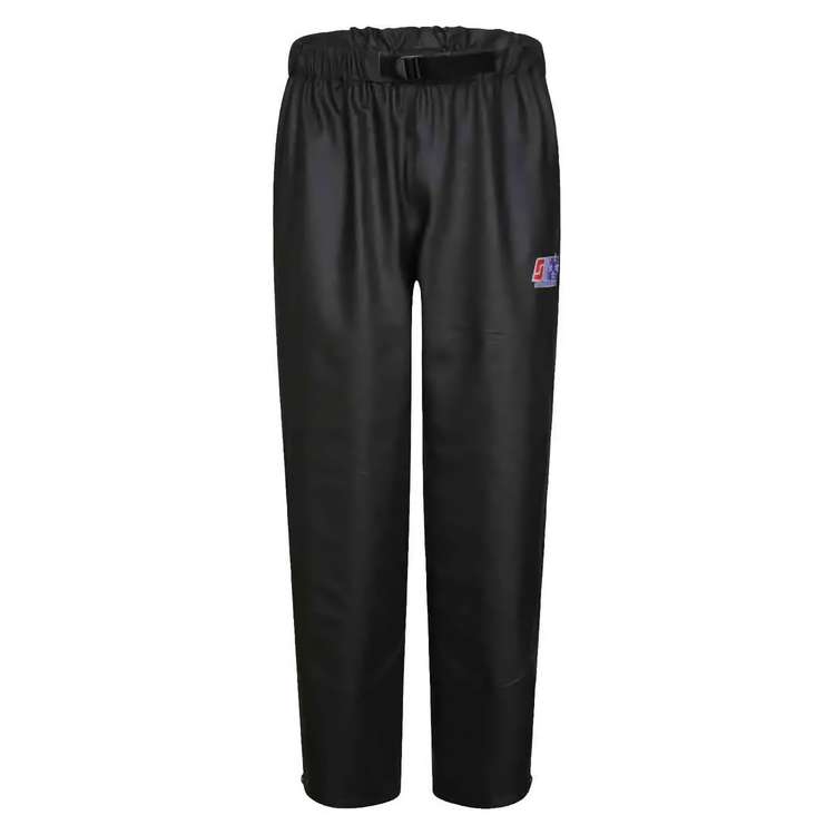 Le pantalon de pluie Stormtex Air 755G est conçu en PVC extensible 340 g/m² avec enduction PU, coloris vert. Le tissu intègre un support polyester qui facilite le séchage. La matière est traitée pour résister aux huiles, adaptée aux environnements d’élevage laitier. Les cuisses et les genoux bénéficient d’un renfort en double épaisseur de PVC, du dessous du genou jusqu’à mi-cuisse. Les coutures sont soudées deux fois, y compris à l’entrejambe et sur les côtés, afin d’assurer une étanchéité totale. La conception en une seule pièce limite le nombre d’assemblages et renforce la tenue dans le temps. Taille élastiquée avec ceinture intégrée et passant plastique de maintien. Accès aux poches latérales du pantalon porté dessous, avec rivets de renfort. Bas de jambes équipés de boutons pression en acier inoxydable pour un ajustement sur bottes.