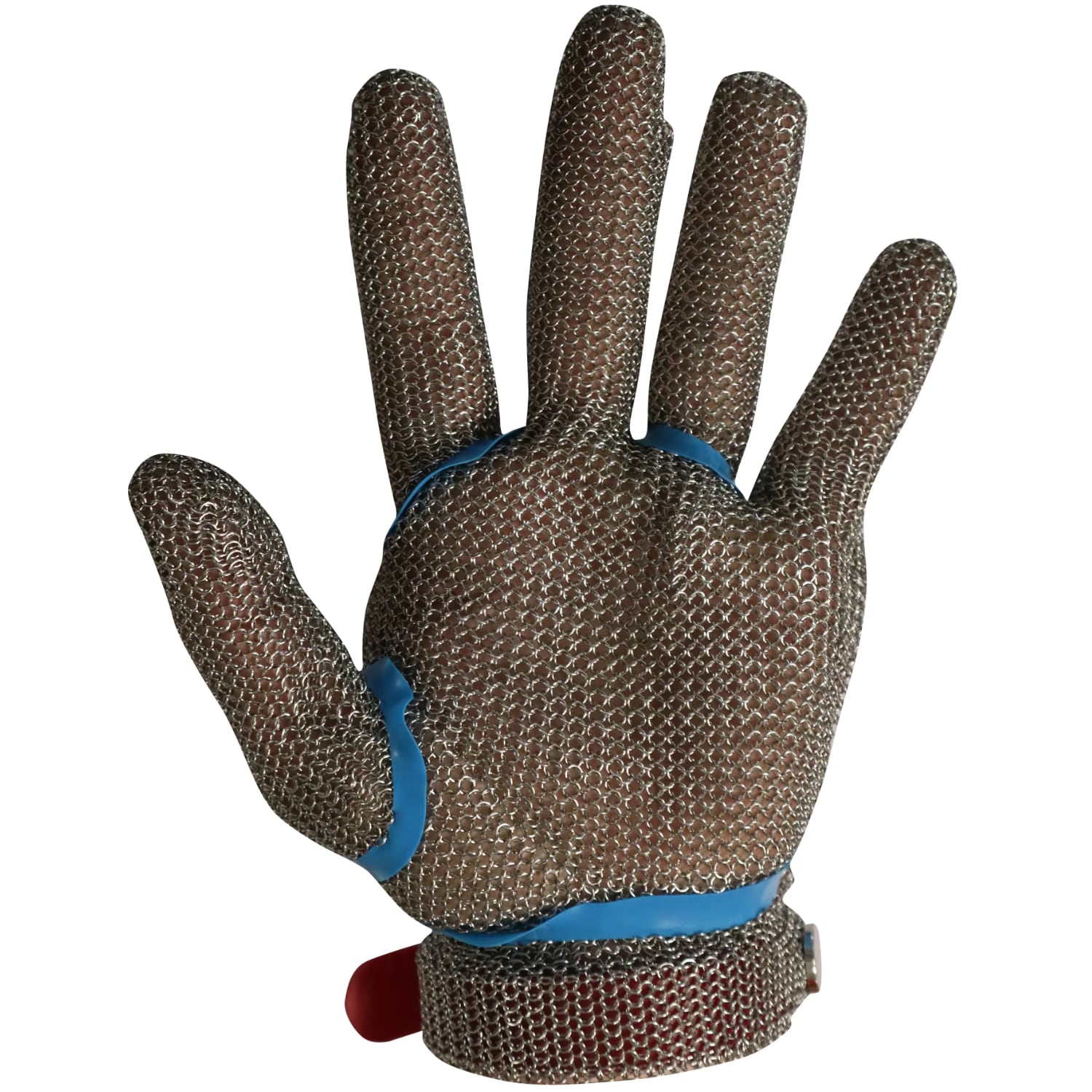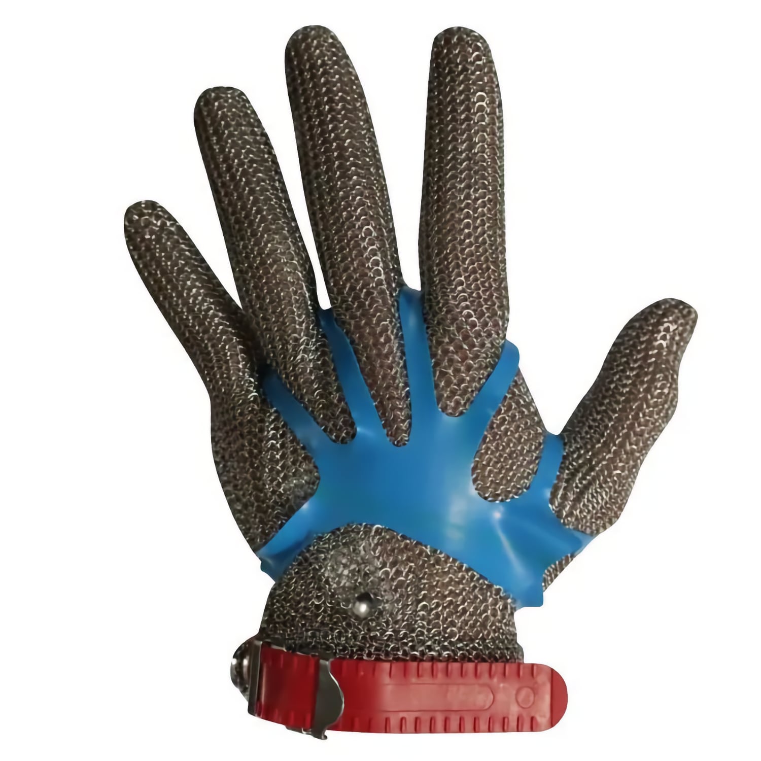 Ce gant en maille d’acier inoxydable intègre une sangle en plastique réglable avec boucle et bouton-pression. L’épaisseur de la maille est de 0,50 mm. Le gant est ambidextre grâce à un sens d’utilisation réversible. La sangle colorée permet une identification rapide de la taille. Le matériau inoxydable limite la corrosion en environnements humides et réduit la rétention bactérienne. Le poignet reçoit un renfort souple qui stabilise le gant lors des gestes de coupe. Le produit est certifié CE catégorie 2, ce qui garantit une protection adaptée aux risques intermédiaires. Il est conforme à la norme EN 1082-1 qui encadre les protections contre les coupures causées par les couteaux manuels. Le gant est aussi compatible contact alimentaire.