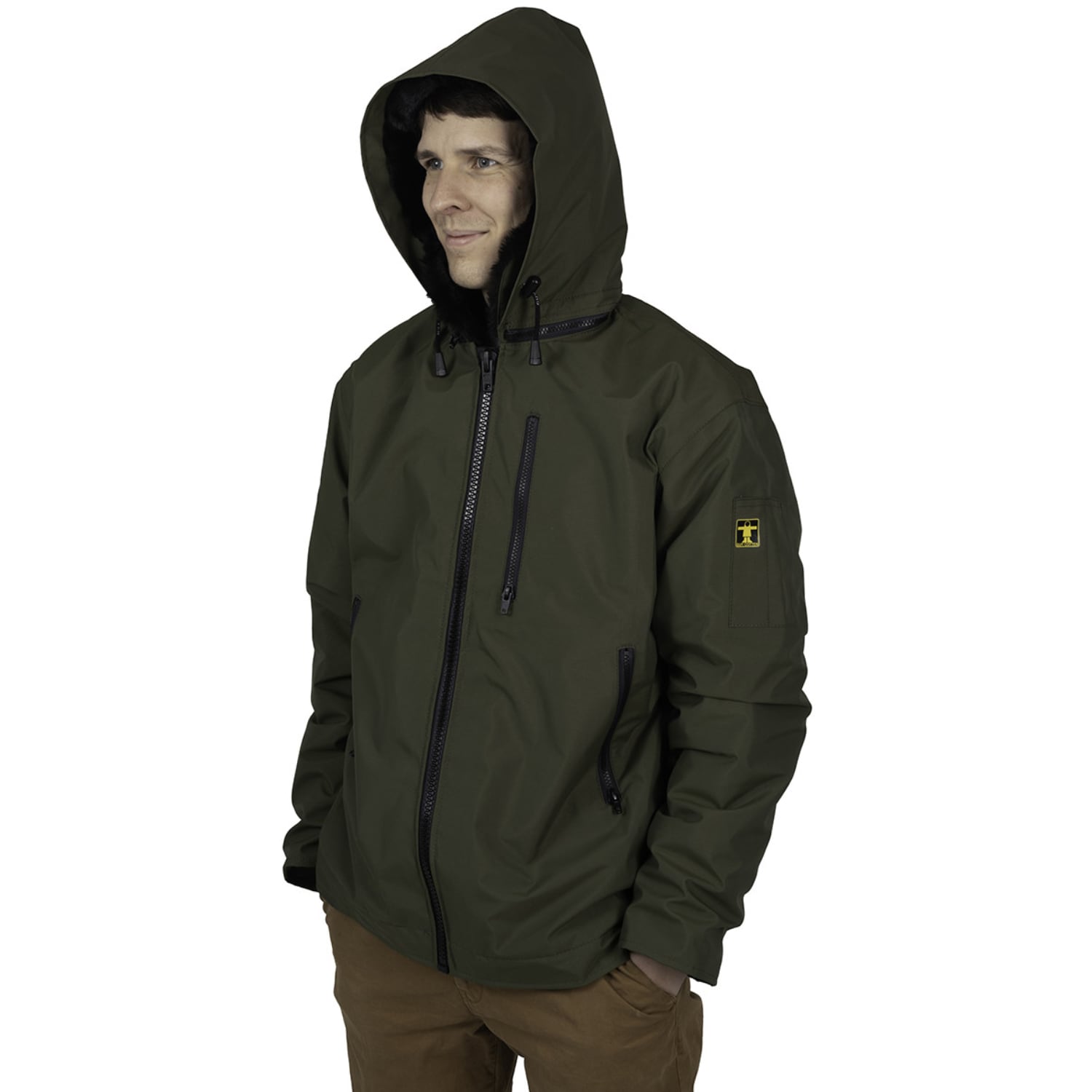 La veste Amiral, conçue par la marque bretonne Guy Cotten, s’inspire du blouson Pacha, initialement créé pour les Officiers de la Marine Marchande. Elle associe robustesse, confort et légèreté pour répondre aux besoins des professionnels exposés aux conditions climatiques exigeantes. Le tissu DREMLIGHT, une membrane 3 couches respirante et imperméable, assure une excellente protection contre les intempéries tout en évacuant efficacement l’humidité corporelle. La veste est doublée d’une fausse fourrure acrylique (500 g/m²), offrant une isolation thermique optimale et un toucher doux particulièrement agréable au niveau du col. Avec un poids total de 194 g/m², ce vêtement est à la fois performant et facile à porter durant de longues journées de travail. Parmi ses autres caractéristiques, on retrouve une capuche amovible doublée, des poignets avec bord-côte pour limiter les infiltrations d’air, et plusieurs poches fonctionnelles, dont une poitrine et deux pour crayons sur la manche.